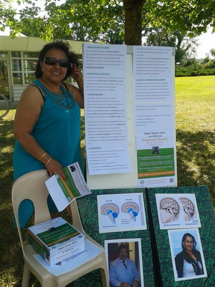 Aïcha , devant le stand de Soutenons Ouarda